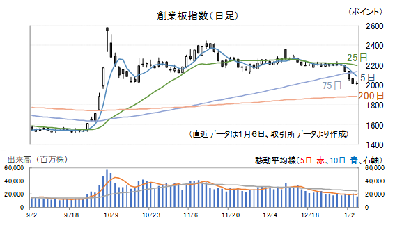6日(月)の創業板指数は0.09%安となりました。