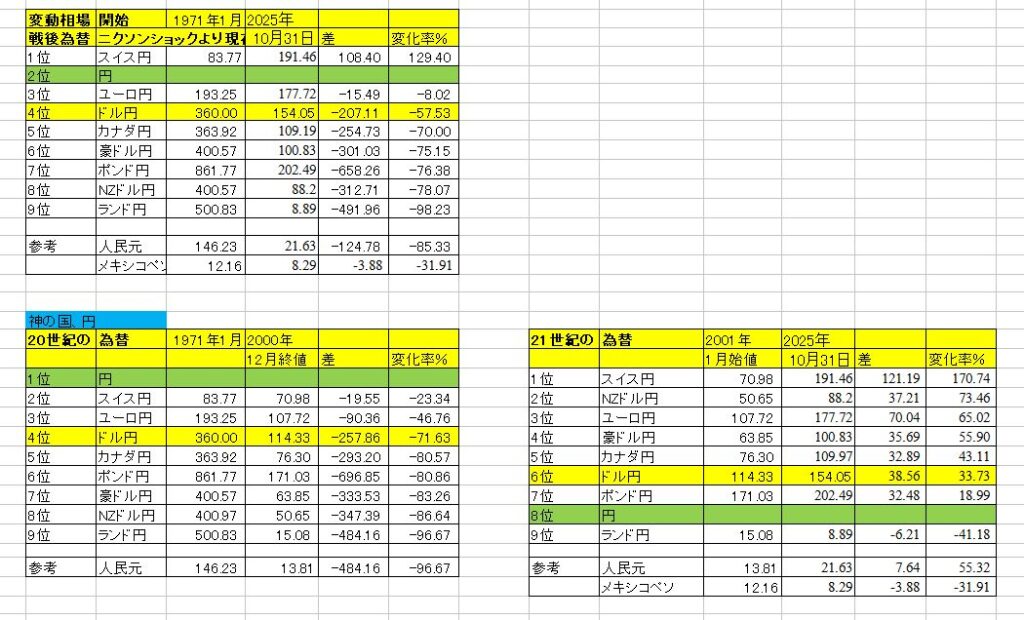 否、戦後の為替では低金利通貨が強い。それが教科書通り。1位スイス、2位円、3位ユーロと低金利が上位。20世紀は円が最強だった、21世紀もスイスが1位でそうなのだが、NZ、豪ドルなどがドル、ポンドを円をしのいでいる。低金利通貨の条件であった貿易黒字が日本から消えたのが円が後退した理由だ