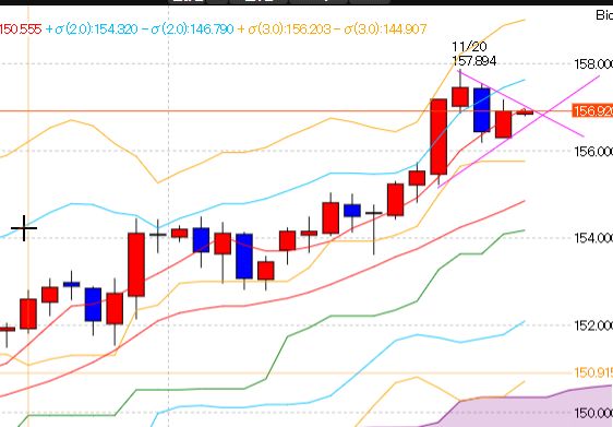 11月19日-24日の上昇ラインがサポート。5日線、20日線上向き。