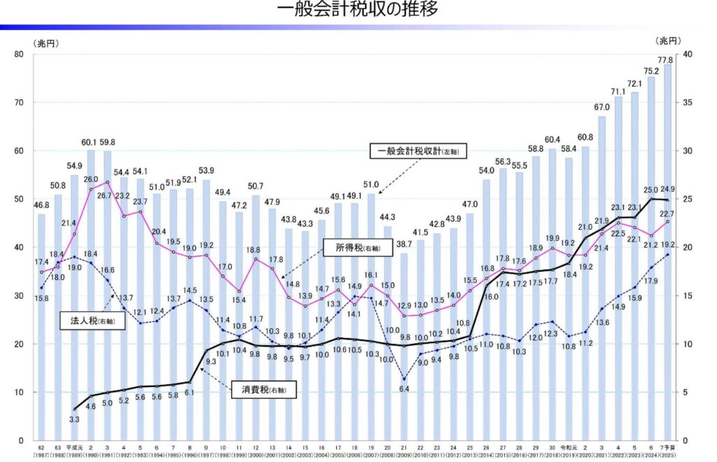 税収ついに80兆円越え、財源ありすぎるのでは?これも円安のお陰、株高のお陰