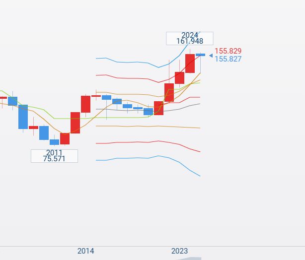 年足はあと一歩で陽転せず (チャートは日足、週足、年足で表示)