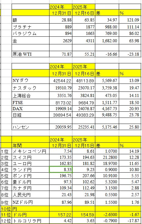 *表は昨日の終値だが貴金属はさらに上がっている(銀歯は保険適用か=冗談です)