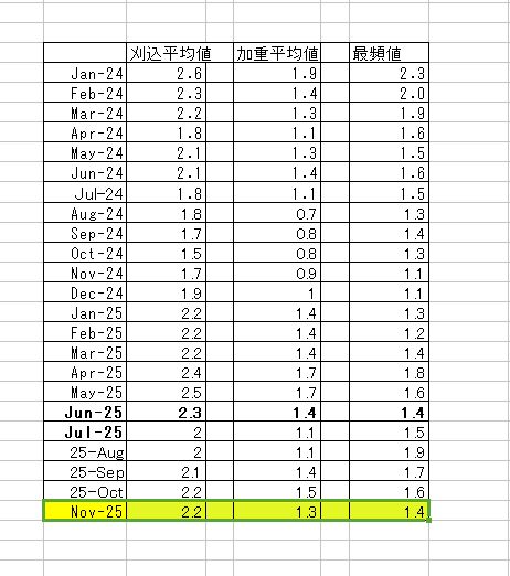 11月は低下、日銀の基調的なインフレ率を捕捉するための指標(基調的インフレは2つが1%台)