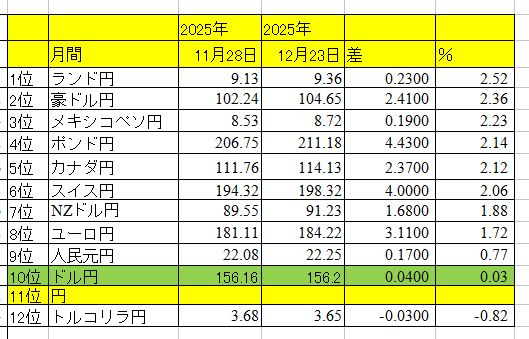 今月は「さつき」さんのお口添えもあって円高かと思いきや、あれあれ。10位のドルと11位の円で介入合戦とは?部下は介入を命じられたら、どっちを売ってどっちを買うのか?