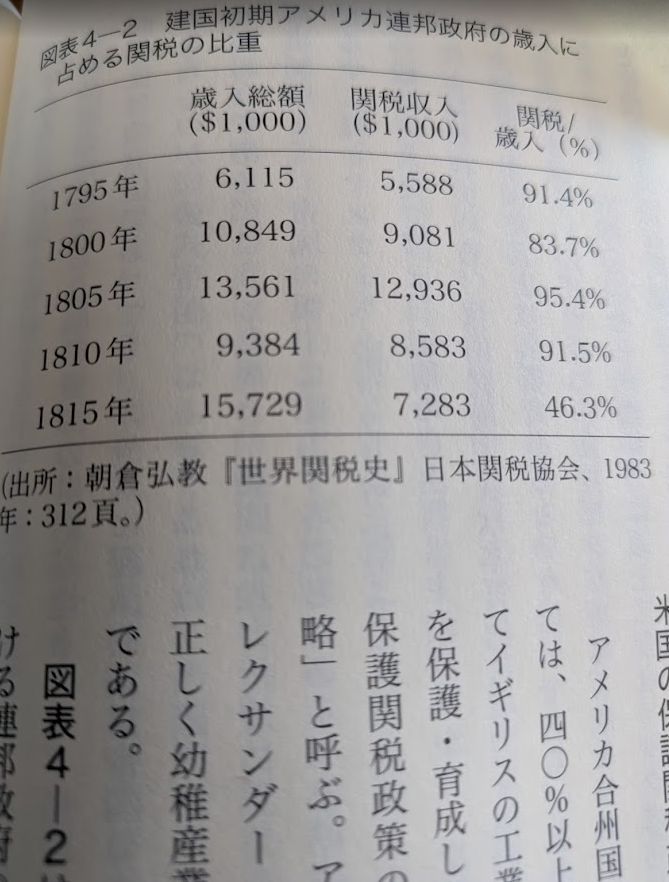 関税争いを起点とした米国独立戦争であったが、独立後の税収の90%以上は関税収入であった。