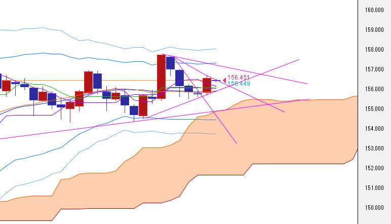 ・日足、22-23日の下降ラインを上抜く。17日-26日の上昇ラインがサポート。22日-26日の下降ラインが上値抵抗。5日線、20日線下向く