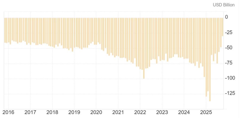 *昨年10月の米国貿易赤字は前月から39%縮小し、2009年以来で最小