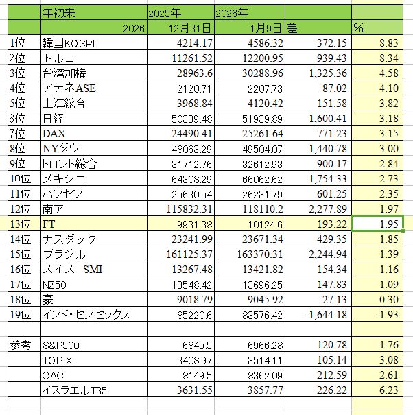 株価駅伝@1区品川。いろいろあるが世界の株価が好スタート