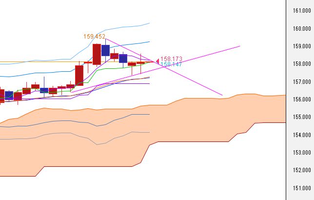日足、1月19日-20日の上昇ラインがサポート。1月14日-20日の下降ラインが上値抵抗。5日線下向き、20日線上向き。
