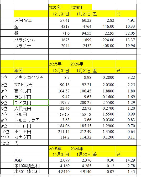 年初は「メキシコ銀」が頑張っています。幕末を騒がせゴールドラッシュを生んだメキシコ銀、ペソも快走中。NZが追走