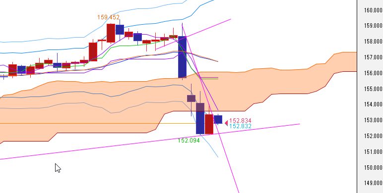 日足、3σ下限、雲下へ 10月2日-1月27日の上昇ラインがサポート。23日-28日の下降ラインが上値抵抗。5日線、20日線下向く。