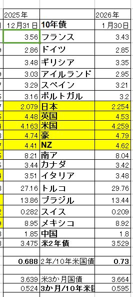 世界の金利(10年国債)、米国利回り上昇。日本、オセアニア、英国も上昇。ユーロ圏は低下。スイスは