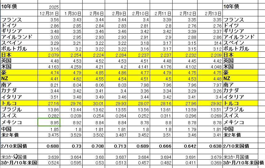 世界の長期金利(利回り)は低下傾向、上昇している国は4つ