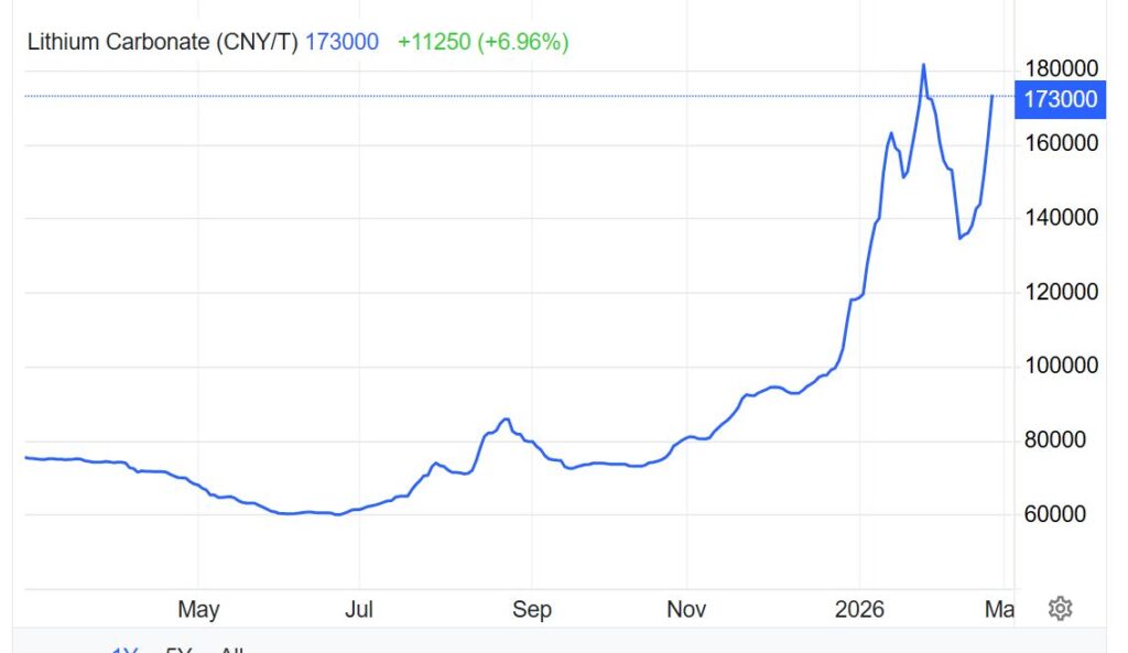 【ジンバブエ、リチウム鉱石輸出停止、炭酸リチウム先物急騰】世界第4位のリチウム生産国であるジンバブエは先日、原鉱石およびリチウム精鉱の輸出を全面的に停止すると発表しました。これは、中国の新エネルギー産業チェーンにとって短期的な供給不安を引き起こす可能性がある。現在、中国のジンバブエのリチウム資源の輸入依存度は約60%。ジンバブエの突然の供給途絶は、中国のリチウム塩生産原料の約9%が不足リスクに直面することを意味する。(実は南アもこの少しこの動きが出ている。詳細は後ほど)