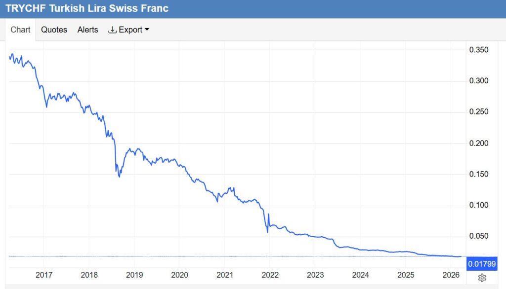 もちろんトルコの金利がスイスの金利より(長期金利)850倍くらい高い(現在34% VS 0.4%)