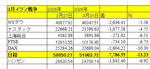 3月は日経最安、有事の「日経最安」は変わらず