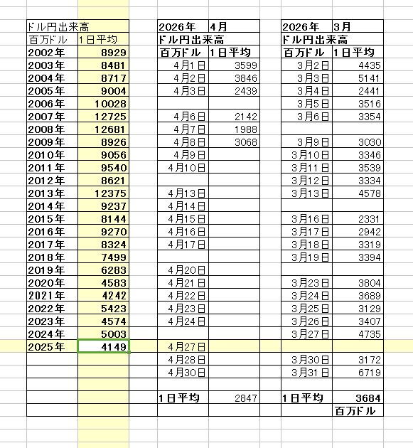 ついに20億ドル台へ。昭和後期の出来高水準。相場も固定相場時代よりも動かなくなってきました