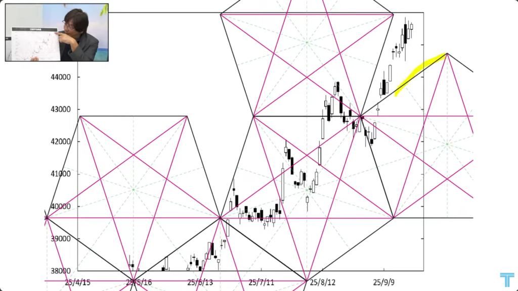 日経平均は配当落ちのテクニカル要因に注意しつつ、4.4万~4.6万のレンジを想定。ペンタゴン目線では一旦の調整を挟みやすいタイミングだけど、崩れなければ年末に再加速もありそうです。株価予想的には『押し目の質』を要チェック。