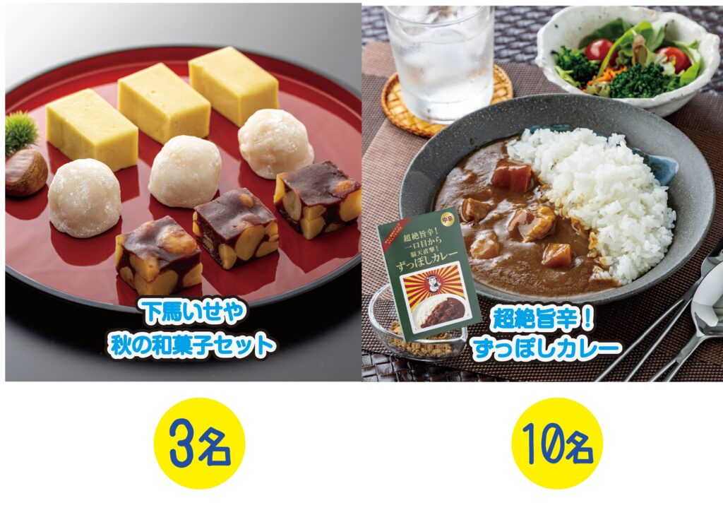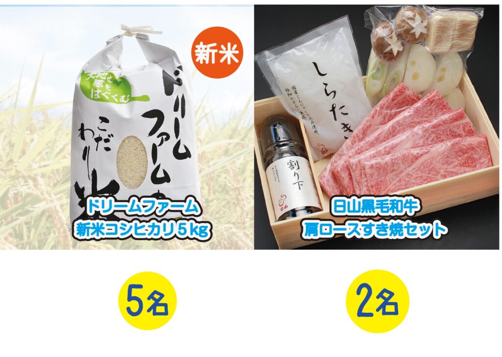 抽選:富山県産新米コシヒカリ5kg、黒毛和牛すき焼き、和菓子、レトルト“ずっぽし”カレー