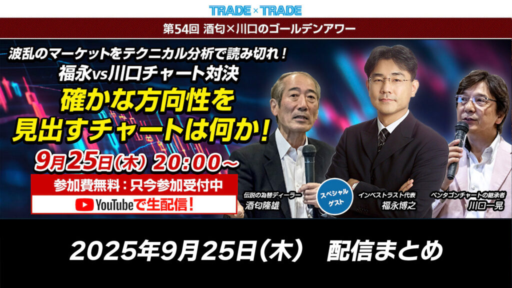 2025年9月25日(木)配信の「酒匂x川口のゴールデンアワー」、今回の配信をざっくり振り返り!どの相場をチェックすべきか、ランキング形式でサクッと解説します。