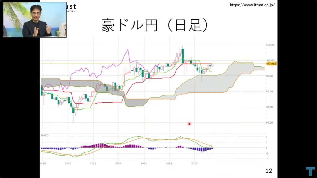 豪ドルは中国関連のニュースに揺れつつも、月足テクニカルは底堅さを示唆。豪ドル円は再び100円チャレンジが見えてくる展開か。