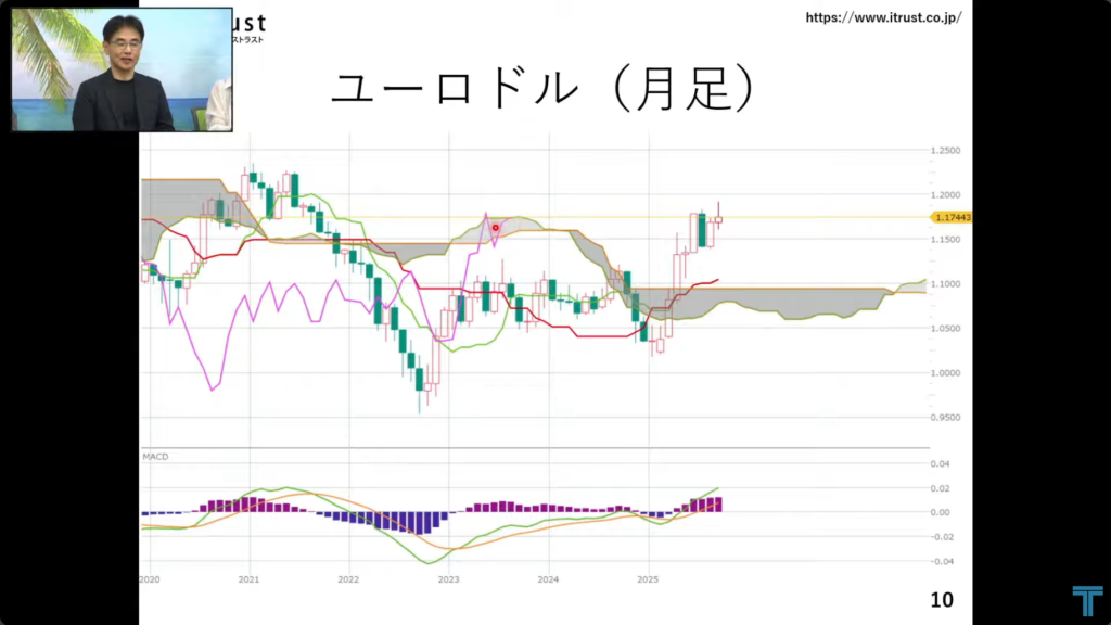 ユーロドルは一目・MACDが素直に上向き。1.12台→1.20台トライが視野に入る『トレンド回帰』シナリオも。