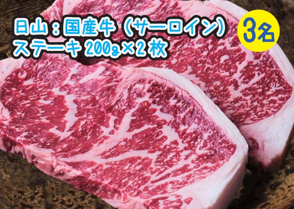 抽選:精肉「日山」サーロインステーキ200g x 2枚セット