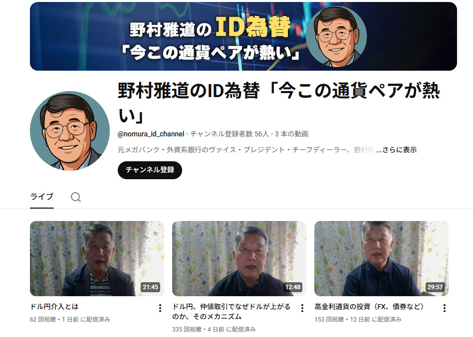 野村雅道YouTubeチャンネル「ID為替分析」 野村雅道のID為替「今この通貨ペアが熱い」がスタート!