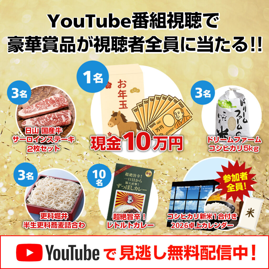 22日までの視聴で10万円ほか豪華賞品が当たるプレゼントにも参加できます!