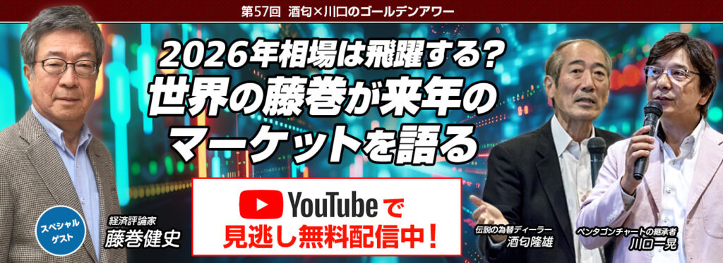 12月18日にYouTube配信されました第57回ゴールデンアワー、今回はスペシャルゲストに世界の藤巻こと「藤巻健史」さんをお迎えし、2026年相場についてお伺いしました。