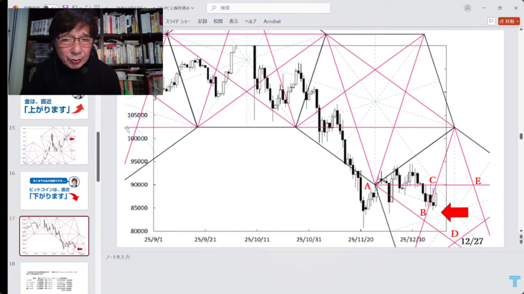 ・BTCの「9万・9万5000」関門と「8万5000」割れの怖さ:19:25~