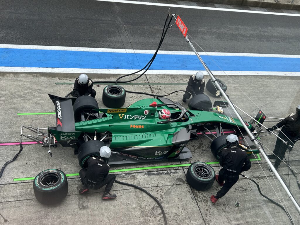 第9戦は雨が止まず、結局は赤旗で中止となり、予選で1,2位だった、友人がスポンサーをしている、Tom’s Racing.のフェネストラッツ選手と現在ドライバーズ•ランキングで1位の坪井選手が優勝、準優勝を果たしたが、今日の第10戦は予選で各々9位、7位と難しい位置に居る。