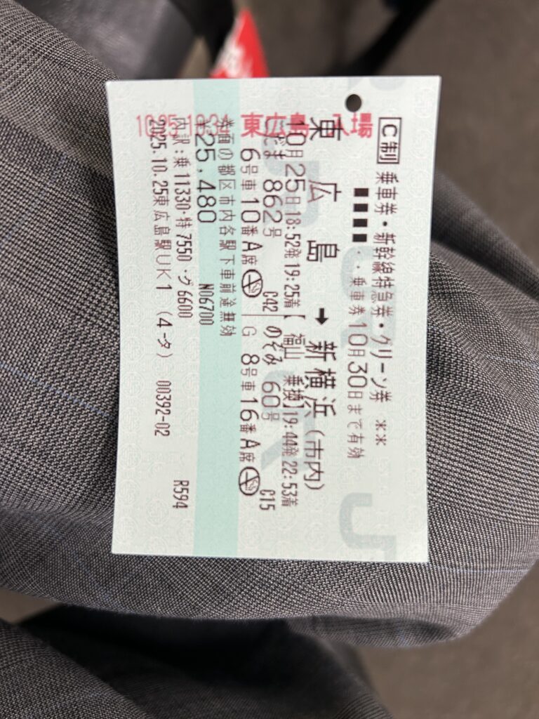 そして18:52東広島発、福山で乗り換えて22:53に新横浜に着く新幹線を確保出来た。