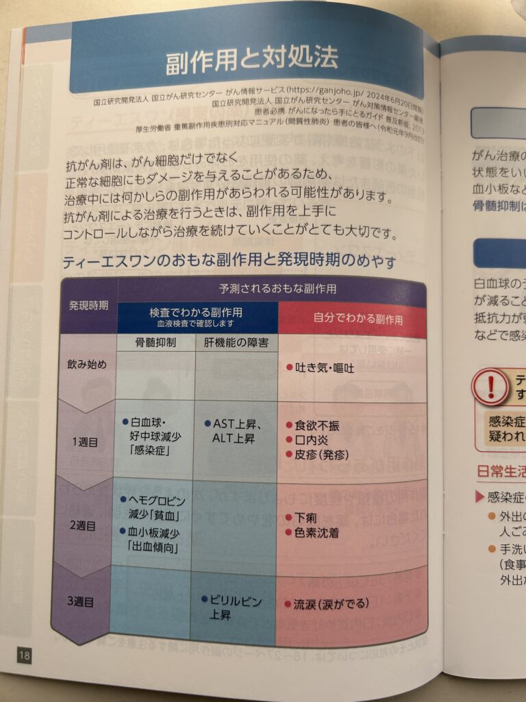 先生から、”TS-1.の副作用は凄まじいから頑張って下さい。”と言われていたのだが、今迄1週間摂取、1週間お休みと言うサイクルを3回行ったが、全く副作用が出ない。