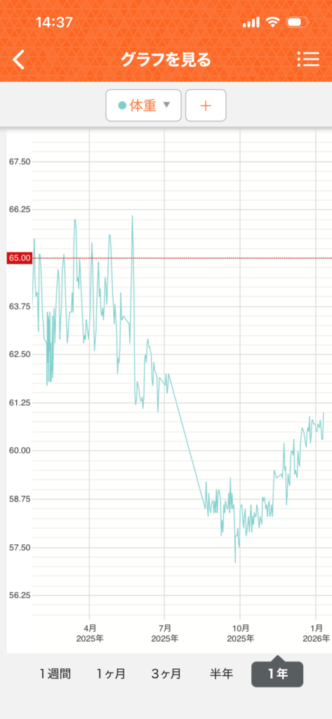 毎晩体重を計っているのだが、手術前の3月から7月に掛けては、62キロから65キロの間を結構乱高下していた。