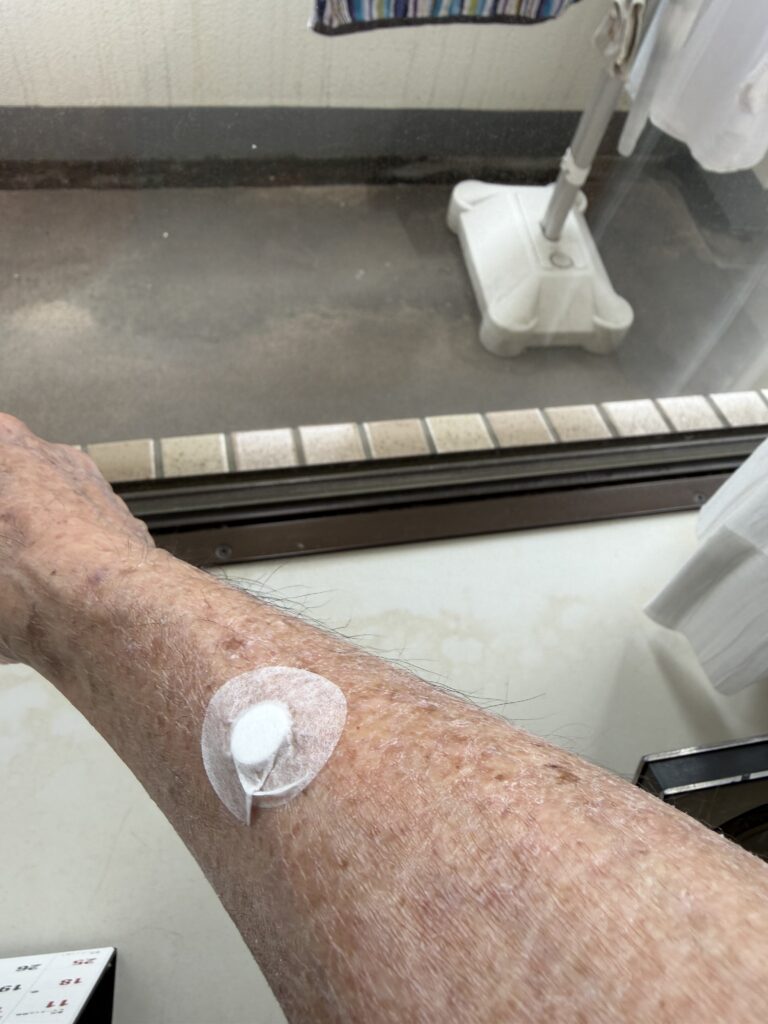 今日もまずは右腕に刺されたのだが、針が入って行かず、仕方無いので左手の甲の飛び出た静脈に突き刺したが、これが痛いのだ!