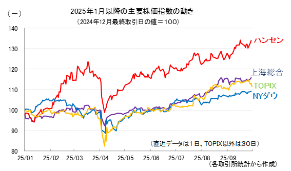 参考として、2025年以降の主要4指数の値動きを示しておきます。