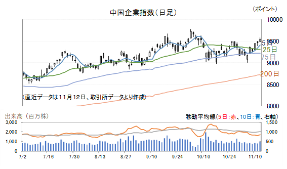 12日(水)の中国企業指数は0.82%高で引けました。
