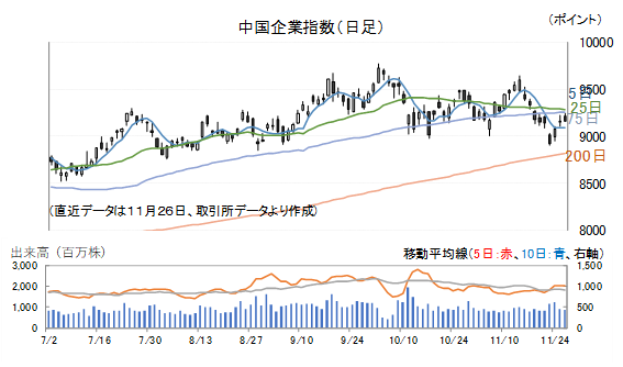 26日(水)の中国企業指数は0.04%高で引けました。