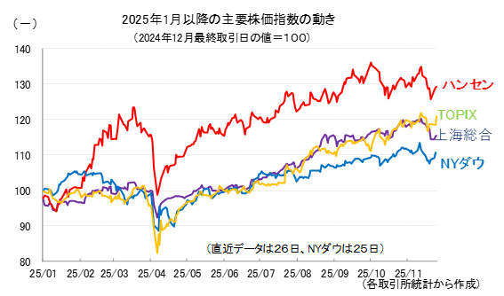 参考として、2025年以降の主要4指数の値動きを示しておきます。