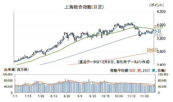 上海総合指数は11月24日をボトムとして、緩やかな自律反発過程にあります。