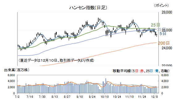経済指標についてですが、国家統計局は10日(水)現地時間9:30、11月の物価統計を発表しています。