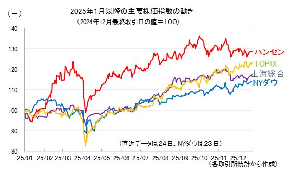 参考として、2025年以降の主要4指数の値動きを示しておきます。