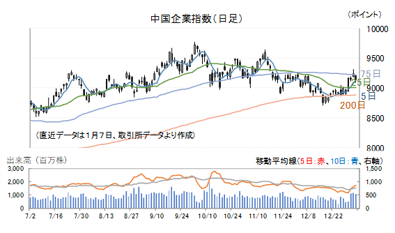 7日(水)の中国企業指数は1.14%安で引けました。