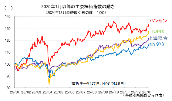 参考として、2025年以降の主要4指数の値動きを示しておきます。