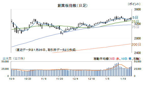 26日(月)の創業板指数は0.91%安となりました。