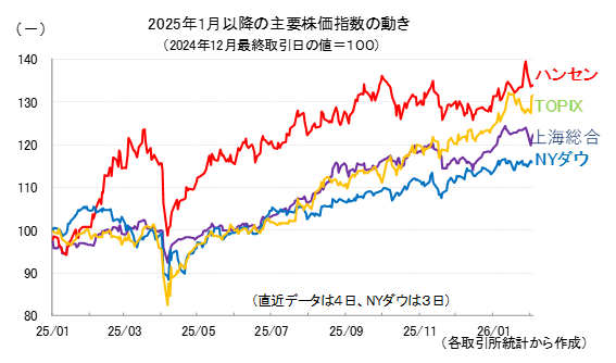 参考として、2025年以降の主要4指数の値動きを示しておきます。