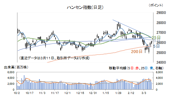 11日のハンセン指数は0.24%安、戦争の早期終結見通しに市場は懐疑的!!