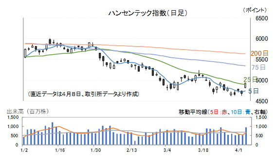 8日のハンセン指数は3.09%高、2週間の停戦、イスラマバードでの協議実施を好感!!