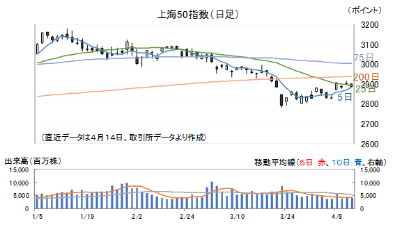 13日(月)の上海50指数は変わらず(0.004%安)となりました。